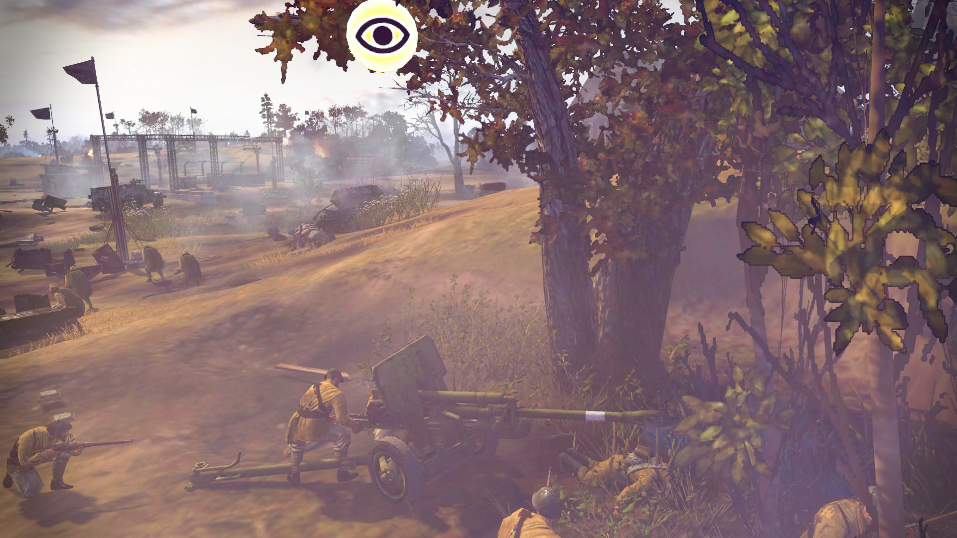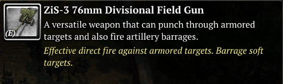 특정 지휘관을 선택할 경우, Zis-3 대전차포는 매복해서 위장상태를 유지할 수 있습니다.